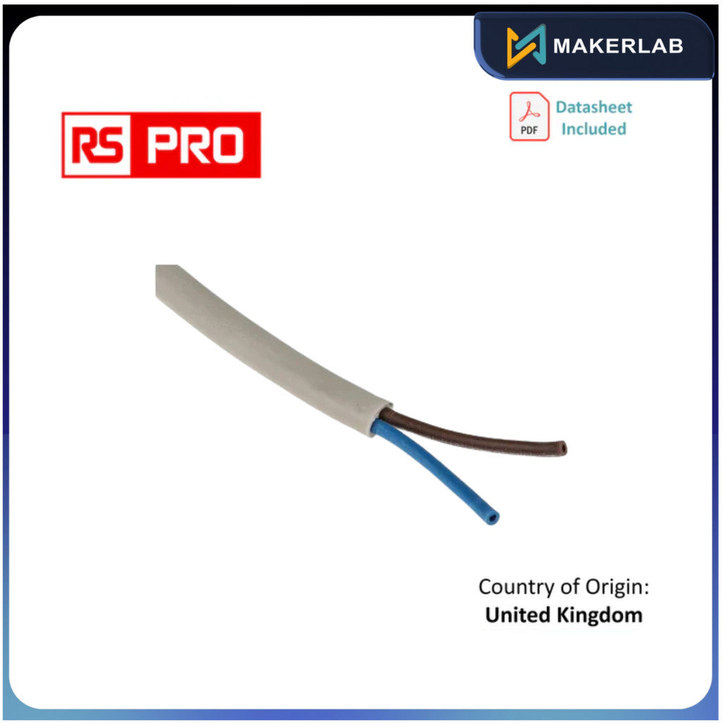Rs pro 2 core power cable, 0.5 mm², 100m, white pvc sheath, 2192y, 3 a, 300 v