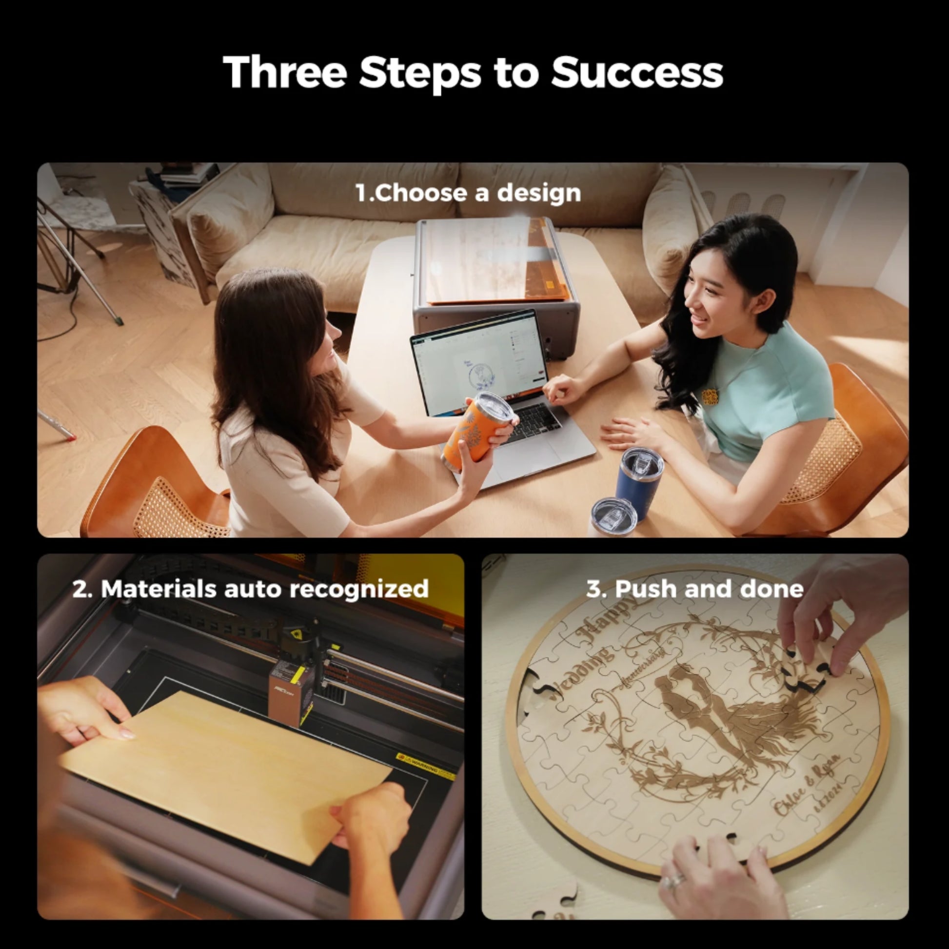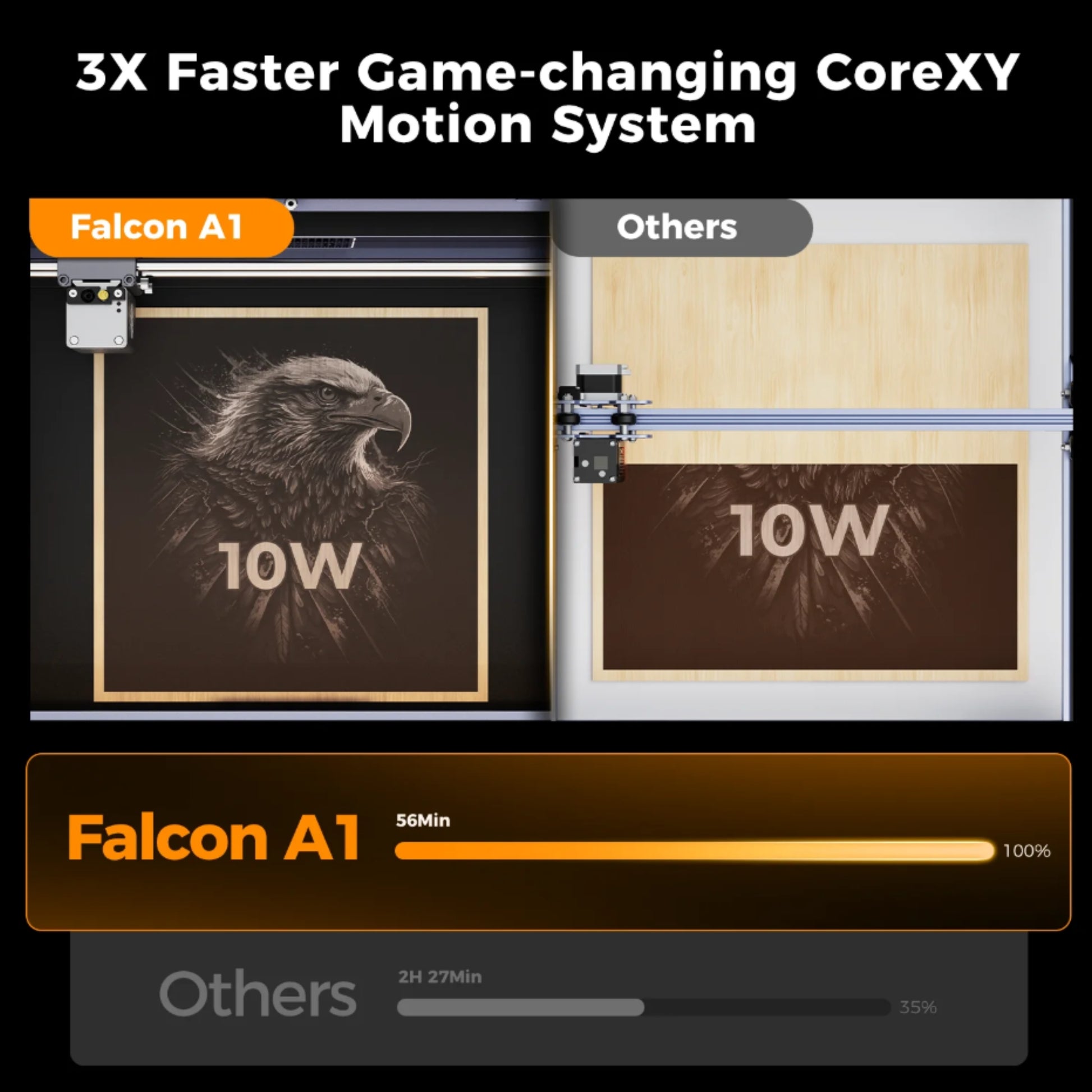 - CoreXY Motion System: Enables high-speed engraving up to 600 mm/s with 0.01 mm precision.