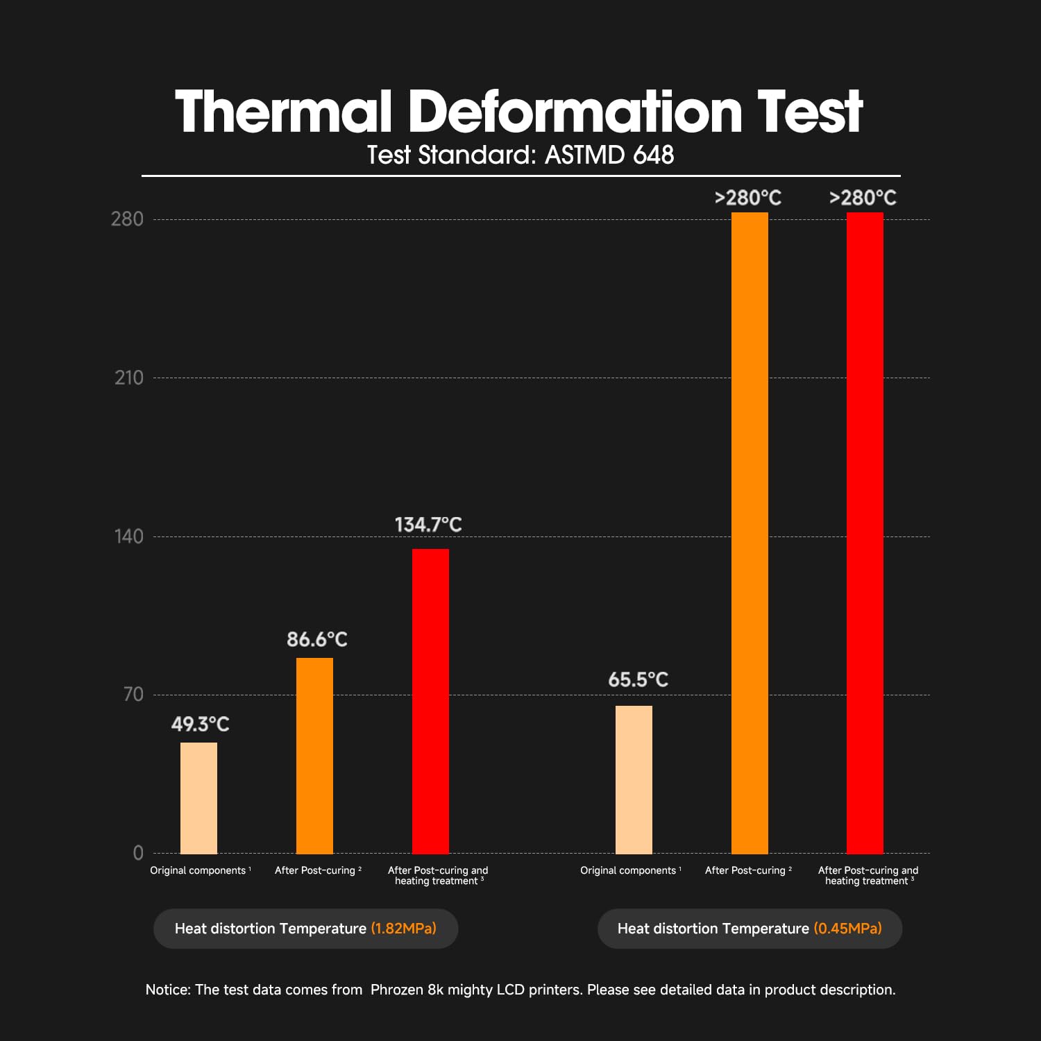 Exceptional High Temperature Resistance: Thermal deformation temperature can reach over 280∘C at 0.45MPa after post-curing and heating treatment.
