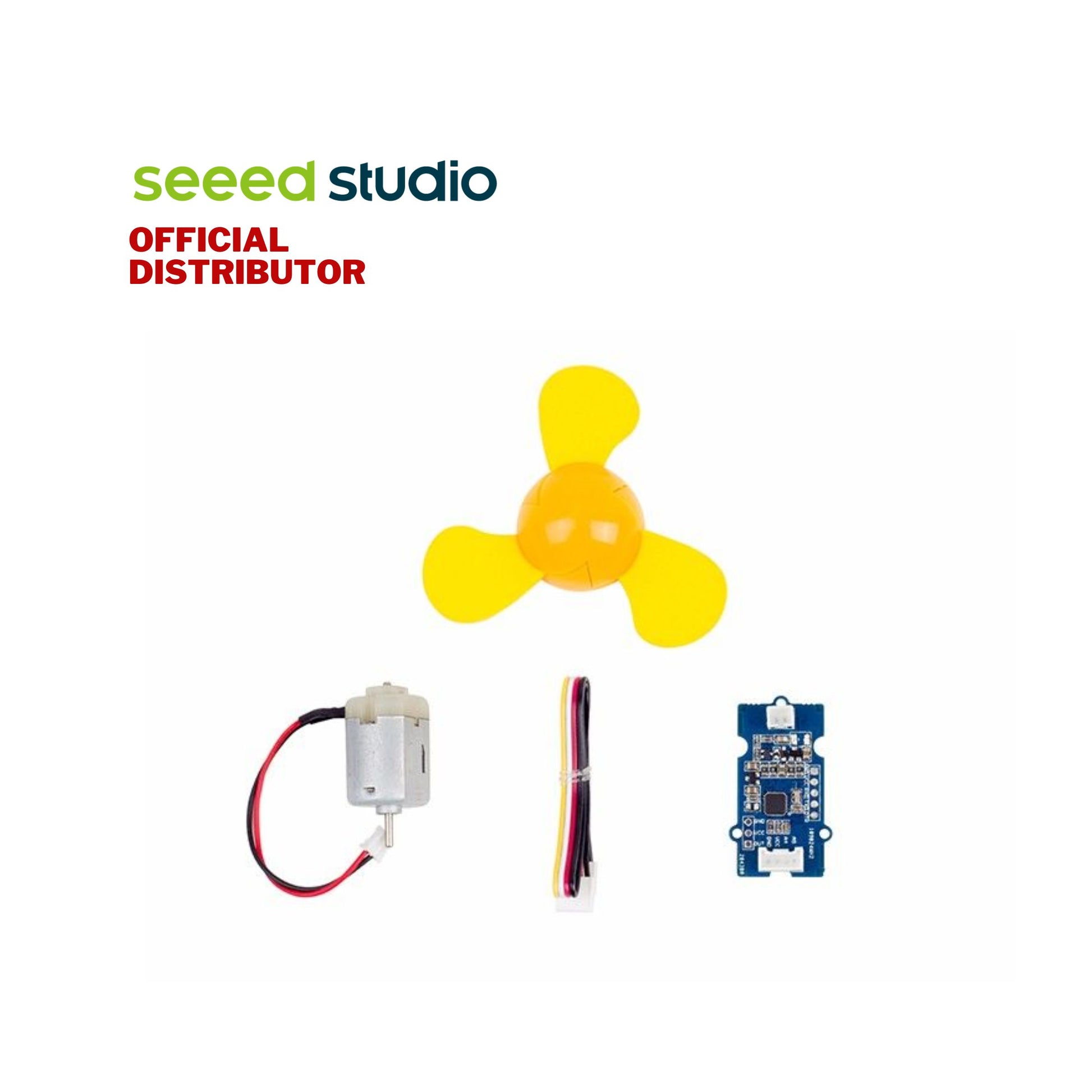 The Grove – Mini Fan v1.1 can be set up in seconds and bring you some nice and cool air on hot days. It has four parts: a mini fan, a DC Motor, a DC motor driver, and a Grove cable. The kid-friendly cartoon-style fan design makes it a good choice for decorating your little LEGO house as well. The motor driver boards have a built-in programmable microcontroller that uses Arduino IDE. By default, it is programmed to drive DC motors with analogue inputs, and the rotation speed depends on the value of the input signal. You can simply connect up all the parts and plug it into a controller board that has Grove interfaces, upload some code, and you are ready to make it spin.